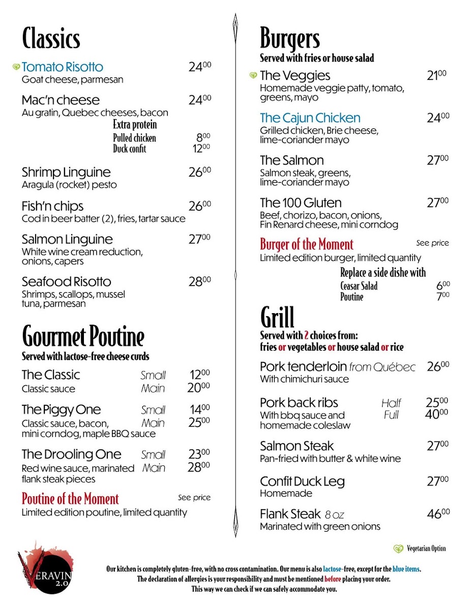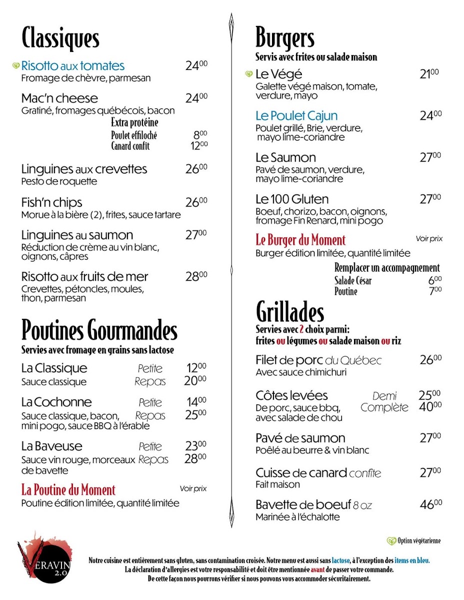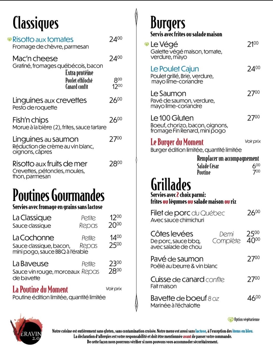 Welcome to Veravin 2.0, an exciting new dining destination in the heart of Quebec City, located at 233 Rue Saint-Paul. This innovative restaurant takes pride in offering an entirely gluten-free menu, ensuring that everyone can enjoy their culinary delights. Their appetizers, such as the Soup of the Moment, Homemade Corndogs, and Beef Gravlax, have received rave reviews from patrons amazed by the flavors.